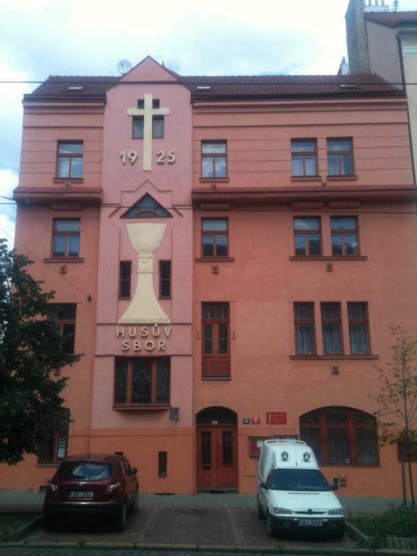 ↔ Husův sbor v Táborské ulici v Praze Nusle s výrazným štukem kalicha. ↔ 50.062979° N, 14.442150° Enavigovat Přidal: jarpo 25.7.14